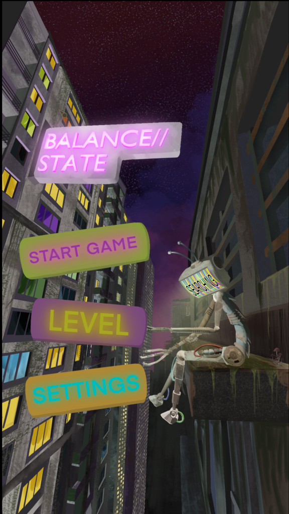 BALANCE//STATE began with a clear constraint: design a mobile game focused on a single core mechanic. Instead of starting with narrative or aesthetics, the development process centered on identifying and refining one strong gameplay verb. The word “balance,” generated early in the ideation phase, became the foundation of the entire project.
